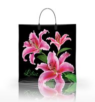 1678л-Пакет Лилия на черном 36*34 с пластиковой ручкой (ЛюксПласт) 1/10/*100