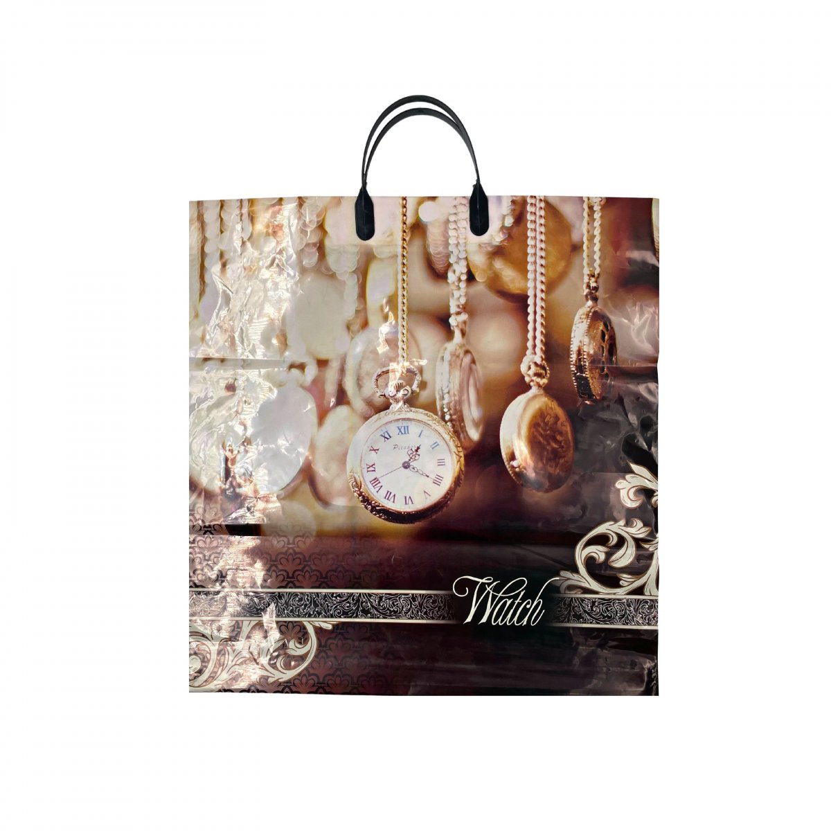 1679ч-Пакет Часы 40*40 с пластиковой ручкой (ЛюксПласт) 1/10/*100