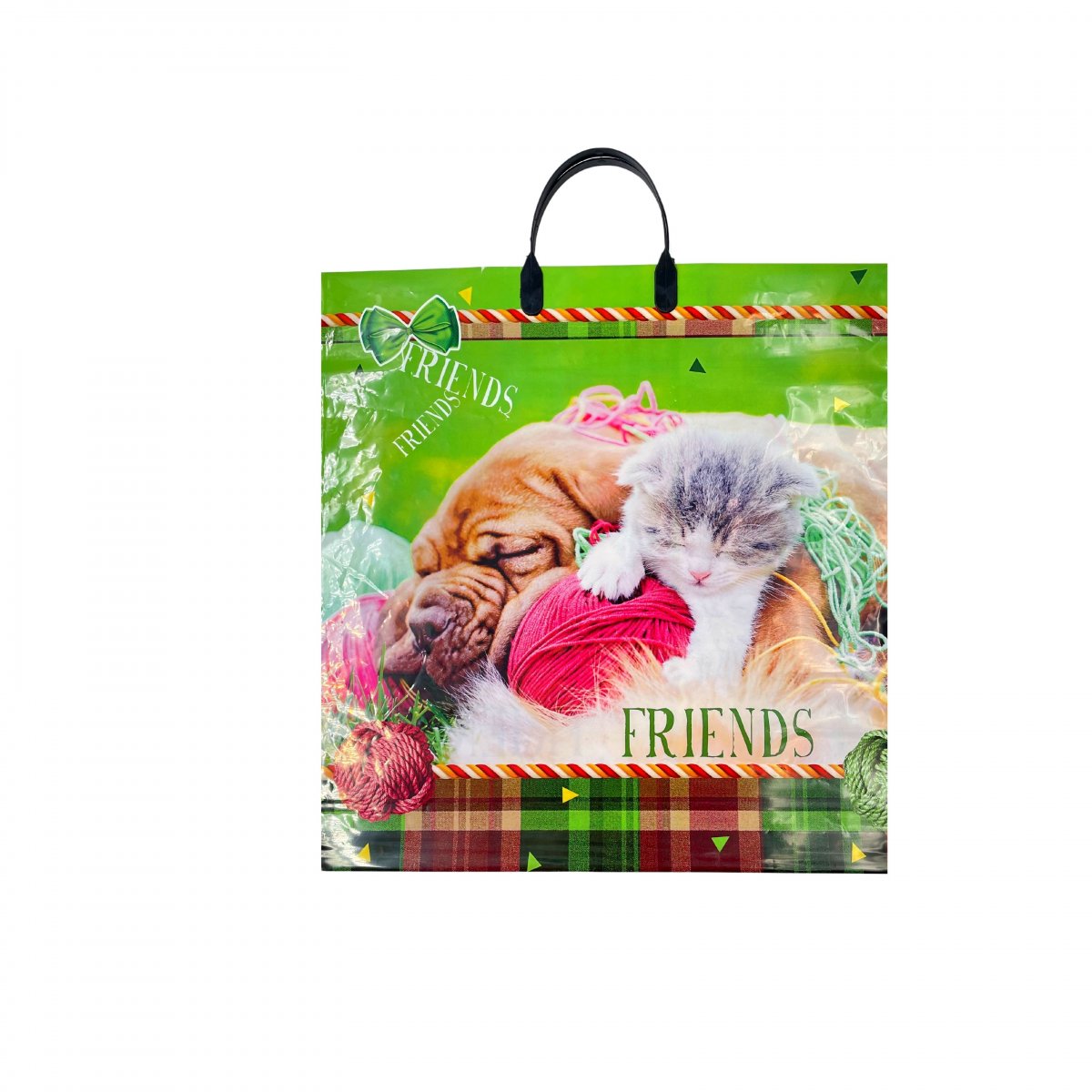 1679д-Пакет Друзья 40*40 с пластиковой ручкой (ЛюксПласт) 1/10/*100