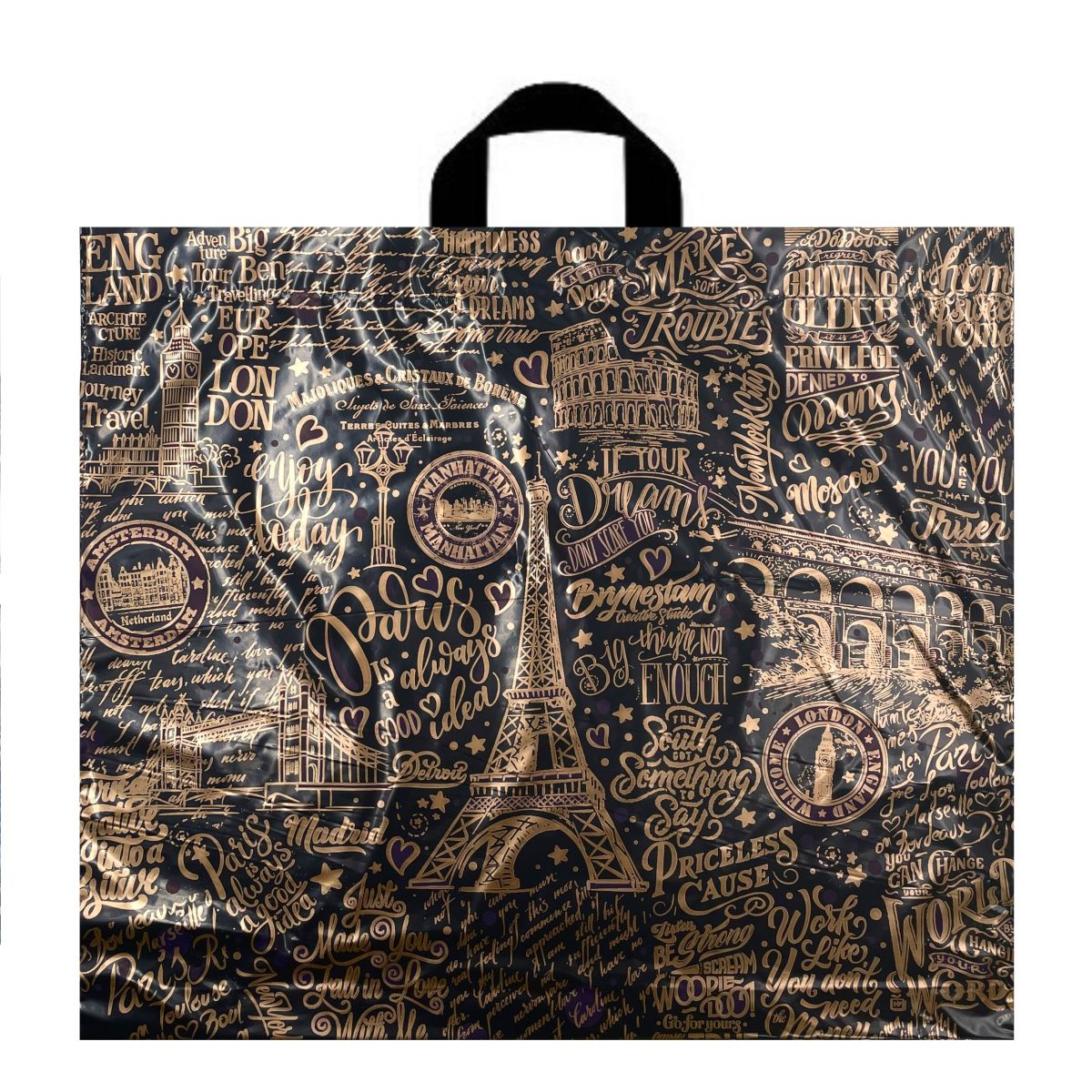 Пакет Европейские каникулы с петлевой ручкой 60*50+6(70мкм) (ИН)/25/250