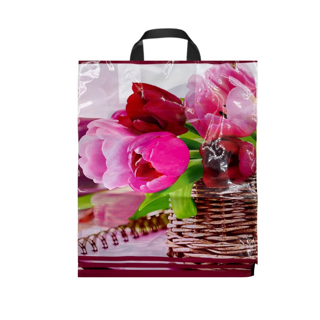 Пакет Корзинка с тюльпанами с петлевой ручкой 25*30/25/500