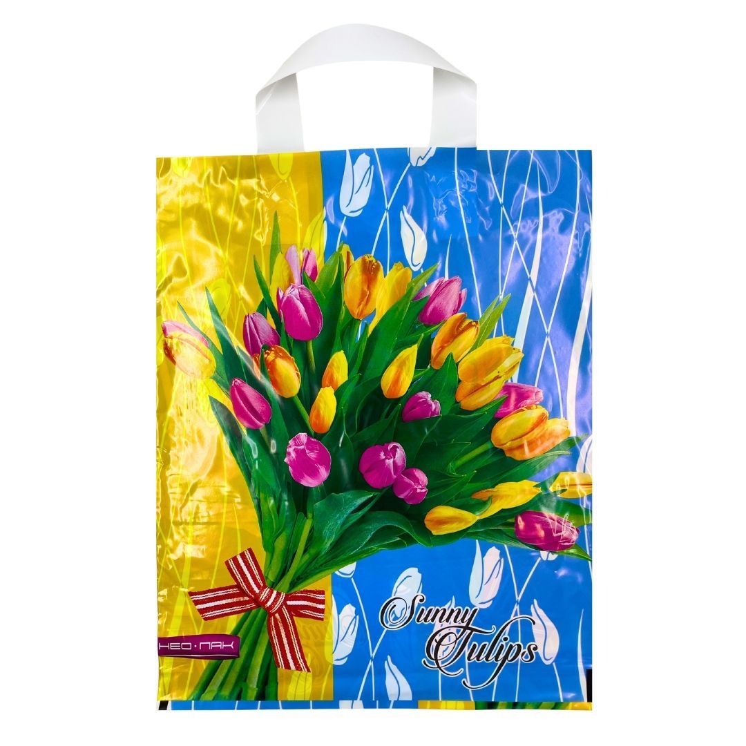 Пакет Солнечные тюльпаны с петлевой ручкой 28*34(60мкм) ПВД(НП)/25/500