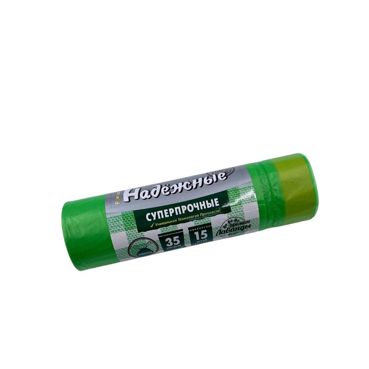 Мусорные пакеты 50*60(35л)ПВД с завязками Ромашка ЗЕЛЕНЫЕ(15шт/рул)/1/30