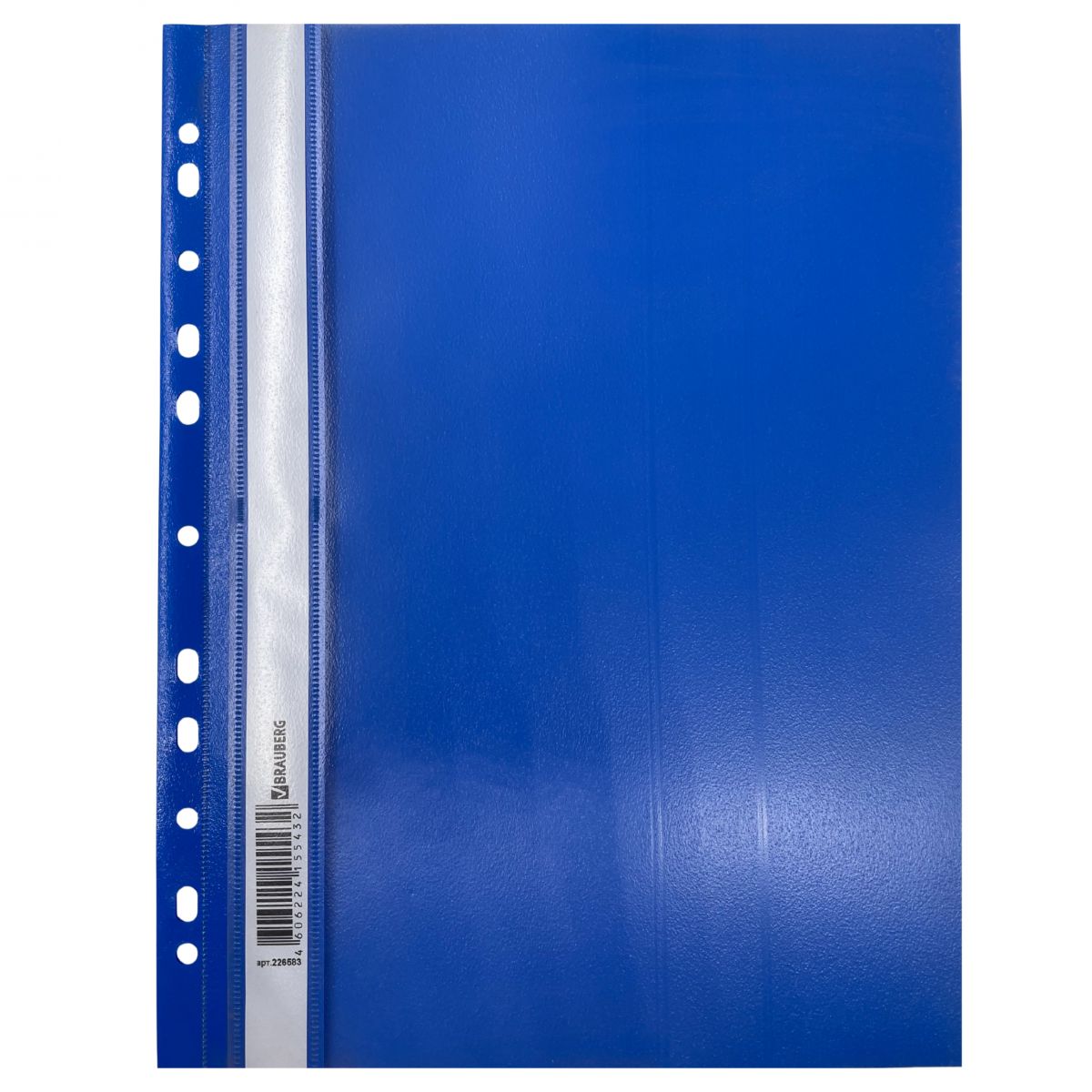 Скоросшиватель пластиковый с перфорацией BRAUBERG, СИНЯЯ А4(226583)/10/400