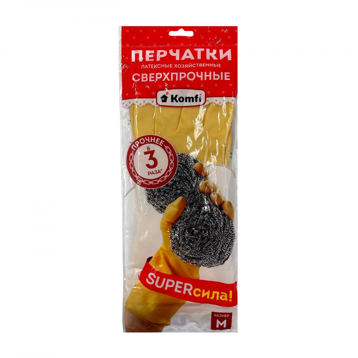 Перчатки латексные хозяйственные сверхпрочные, M(Komfi)/1/*12/*144
