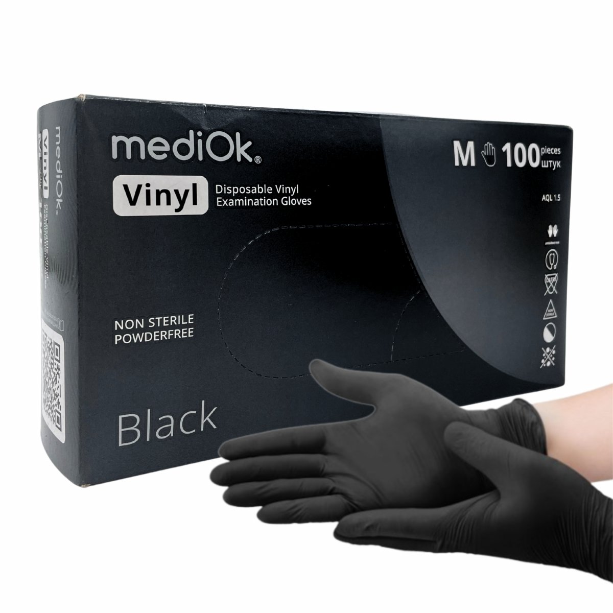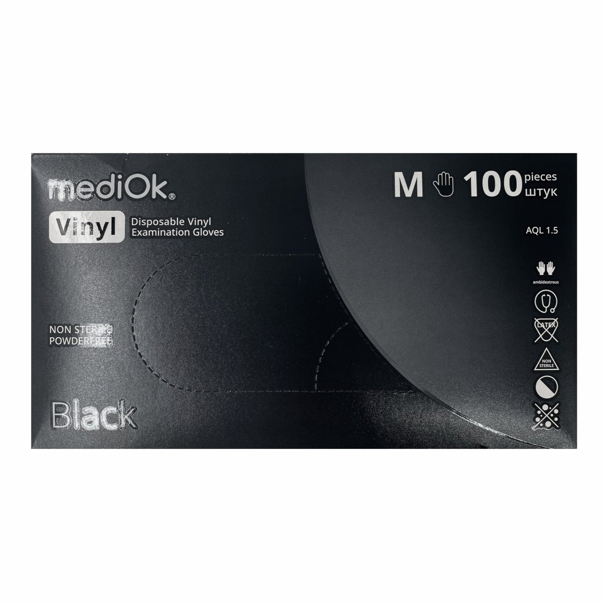 Перчатки нитрил.неопуд.черные MediOk,M(100шт)/1/10