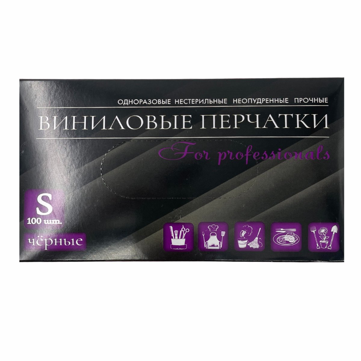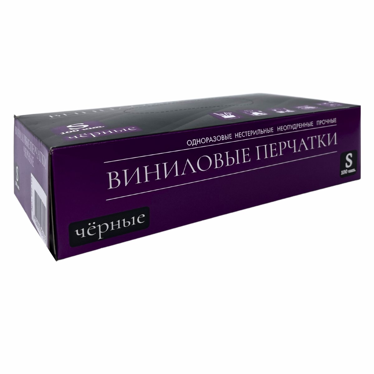 Перчатки нитриловые неопудренные черные S (100шт)/1/*10