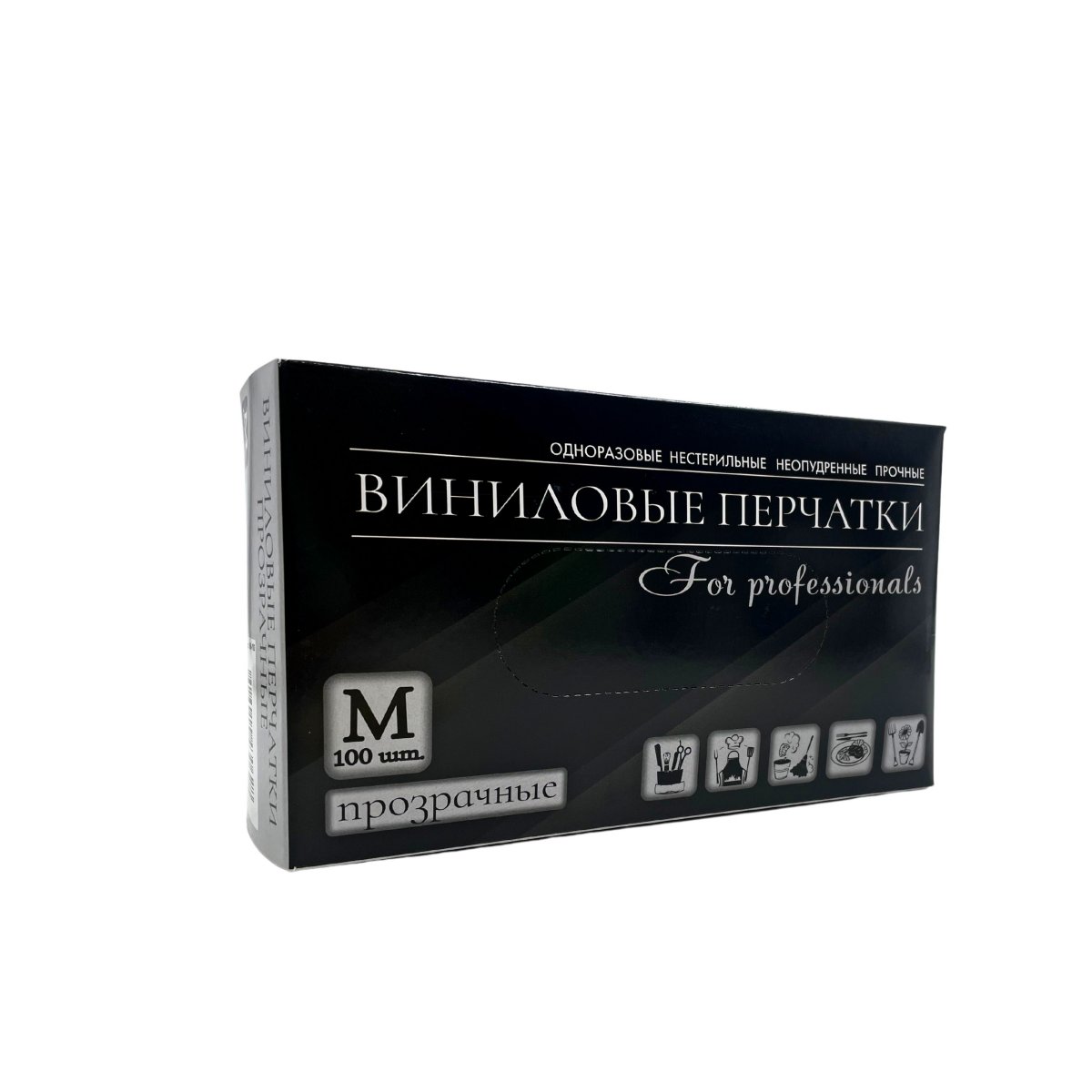Перчатки виниловые неопудренные M (100шт)/1/10