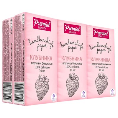 Платочки бумажные PREMIAL трехслойные "Клубника"/6/240