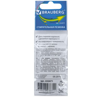 Резинка стирательная BRAUBERG овальная предназначена для аккуратного удаления помарок и исправлений на бумаге. Ее форма и размеры обеспечивают удобство и комфорт во время работы.Преимущества:
