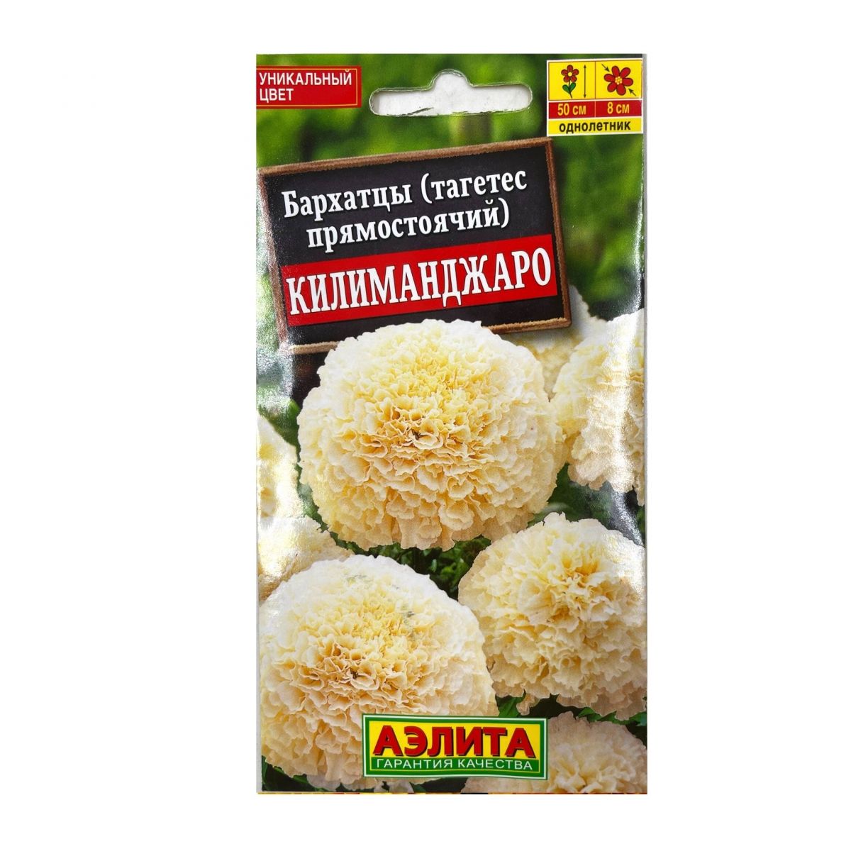 Пакетик с семенами бархатцев "Килиманджаро" от компании Аэлита Ц – это прекрасный выбор для садоводов, стремящихся украсить свой участок яркими и неприхотливыми цветами.