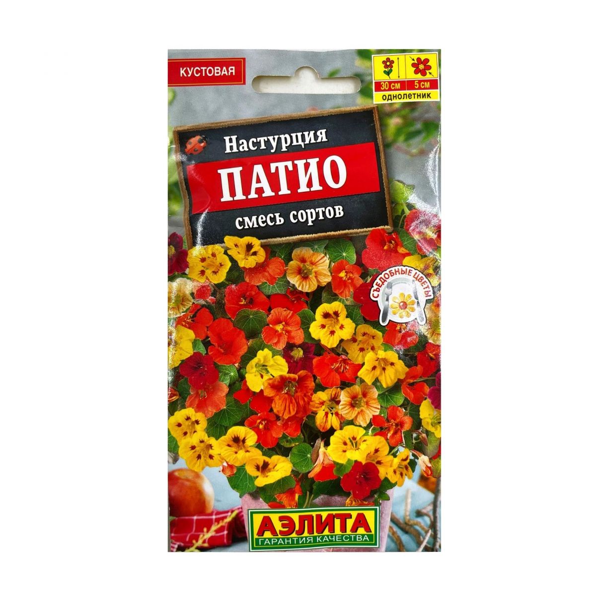 Пакетик с семенами «Настурция Патио» от Аэлита Ц/10 – это прекрасный выбор для тех, кто хочет украсить свой балкон или террасу яркими цветами.