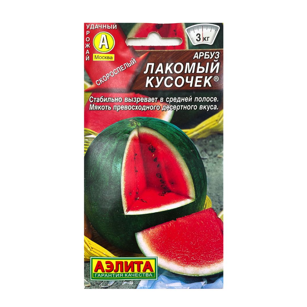 Пакетик с семенами арбуза «Лакомый кусочек» от компании Аэлита Ц станет отличным выбором для тех, кто хочет вырастить вкусный и сладкий арбуз прямо у себя на участке.