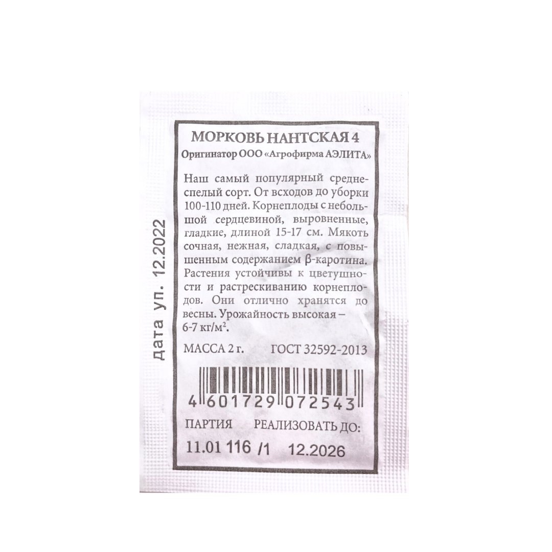 Этот сорт моркови хорошо хранится и сохраняет свои свойства длительное время. Покупая семена моркови "Нантская" от Аэлита Б, вы можете быть уверены в качестве своего будущего урожая.