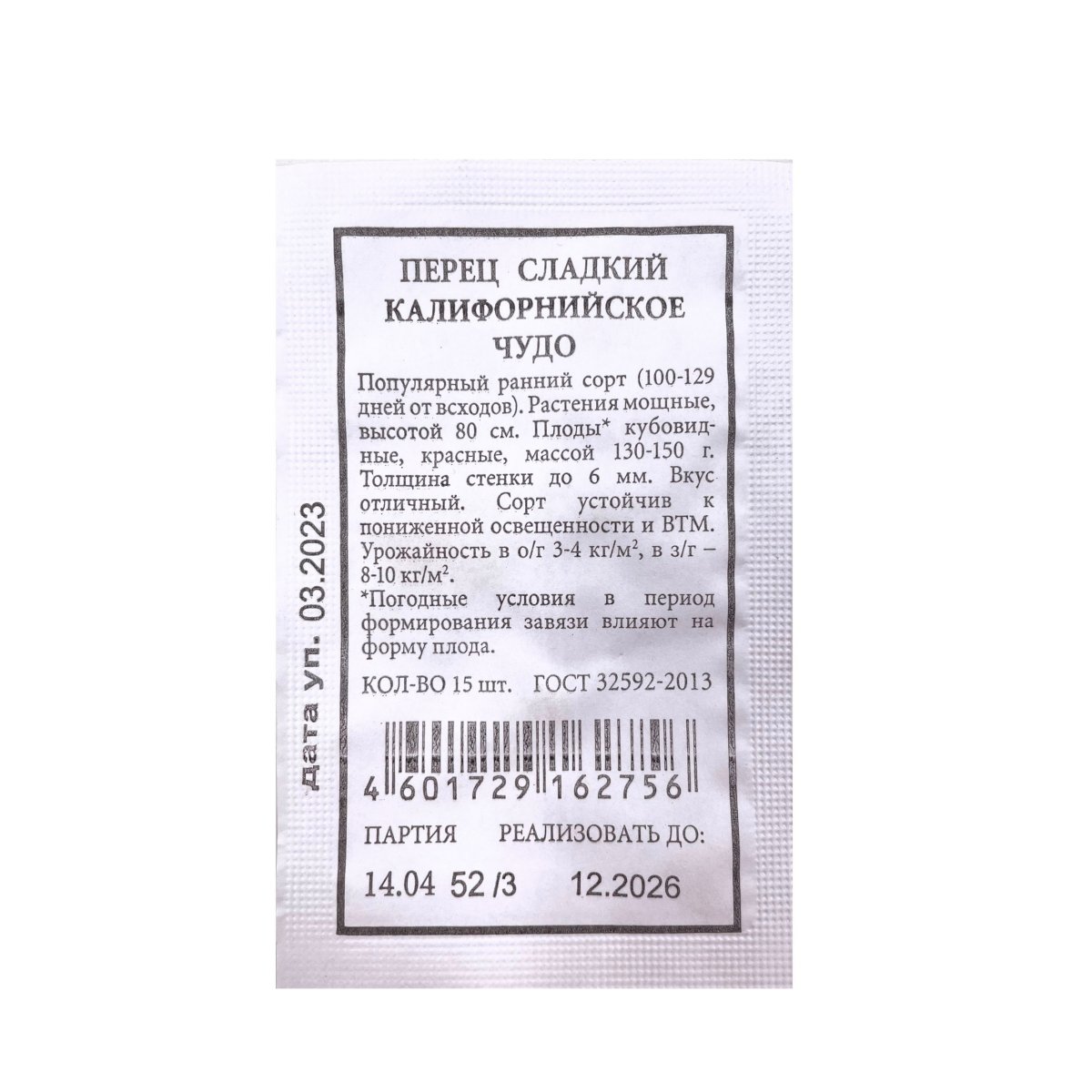 Семена упакованы в бумажные пакеты весом 20 штук. Этот сорт перца хорошо адаптируется к различным климатическим условиям и подходит для употребления в свежем виде, а также для консервирования и заморозки.