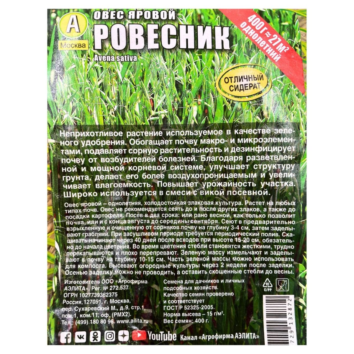 Овес яровой Ровесник 0,4 кг(179-186)/10