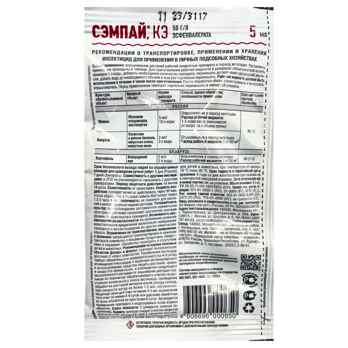 Сэмпай от комплекса вредителей 5мл Август УНАС(14279)/200