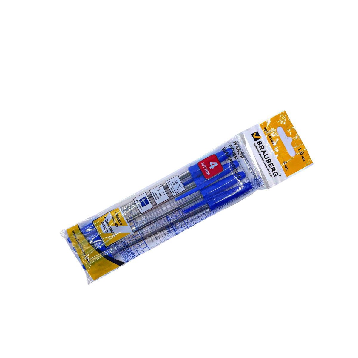 Ручка шариковая BRAUBERG, НАБОР 4шт., Line, корп.прозрачный, 1,0мм(141099)/24/144