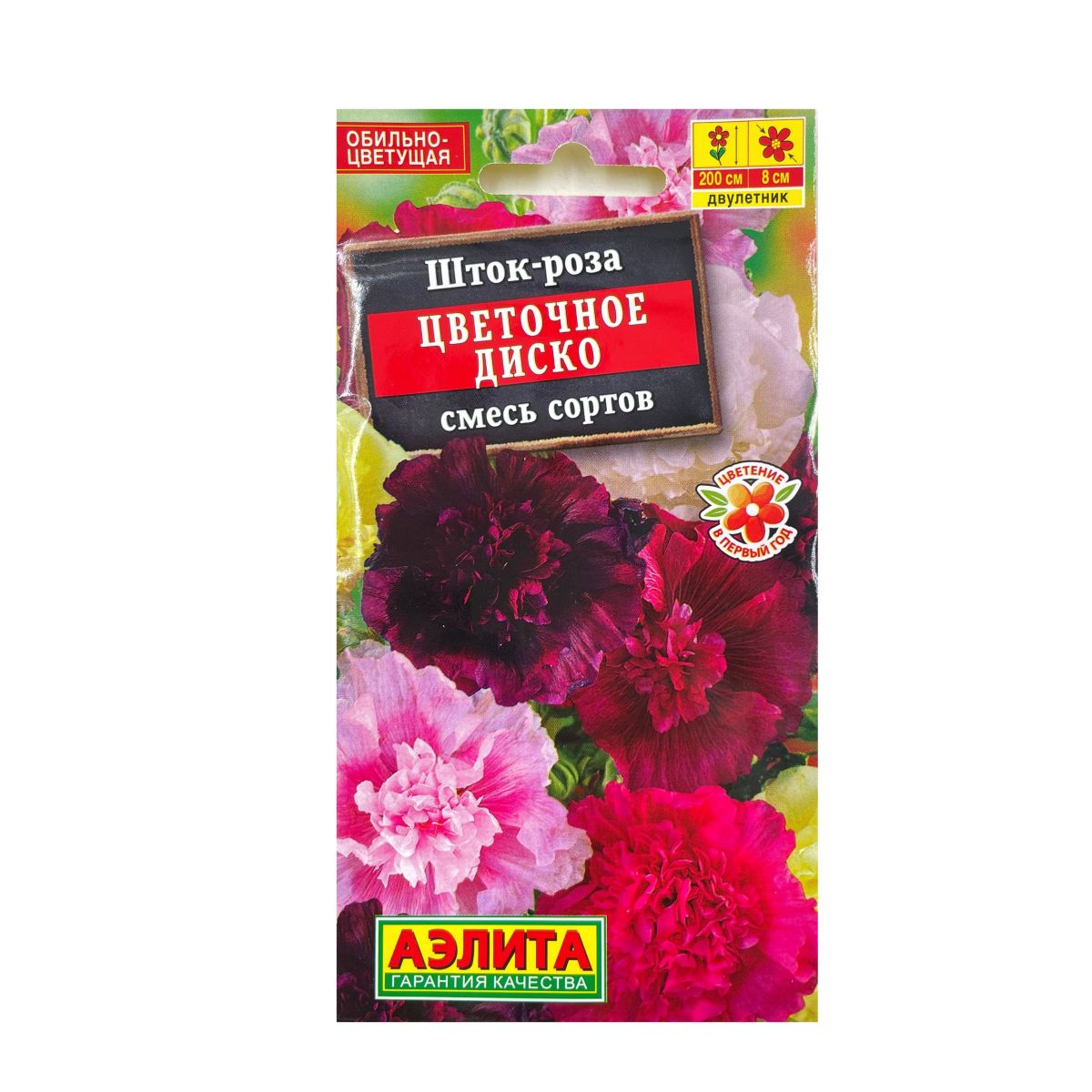 Пакетик с семенами шток-розы «Цветочное Диско» от Аэлита Ц станет ярким акцентом вашего сада! Этот сорт порадует вас своими крупными цветками насыщенного цвета, которые будут радовать глаз с июля по сентябрь.