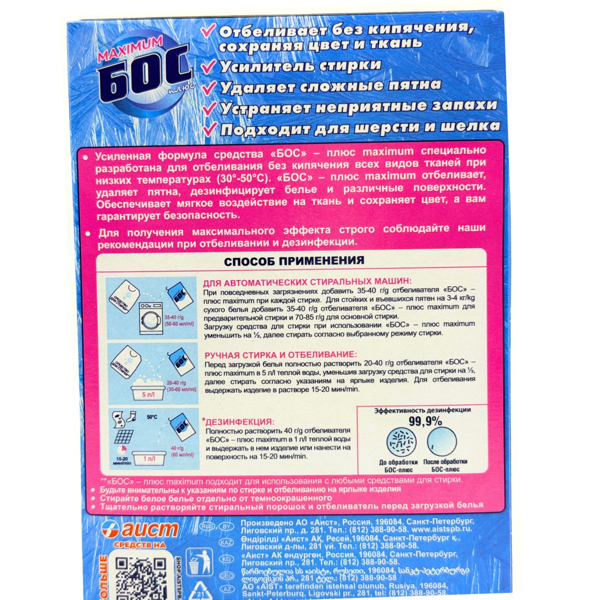 БОС ПЛЮС MAX эффективно удаляет пятна и загрязнения различного происхождения, сохраняя цвет тканей и продлевая срок службы одежды.Безопасность и экологичность