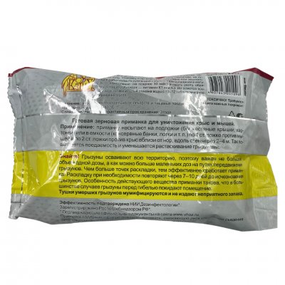 Работает по принципу поедания: грызуны съедают отравленную приманку и погибают в течение нескольких дней.