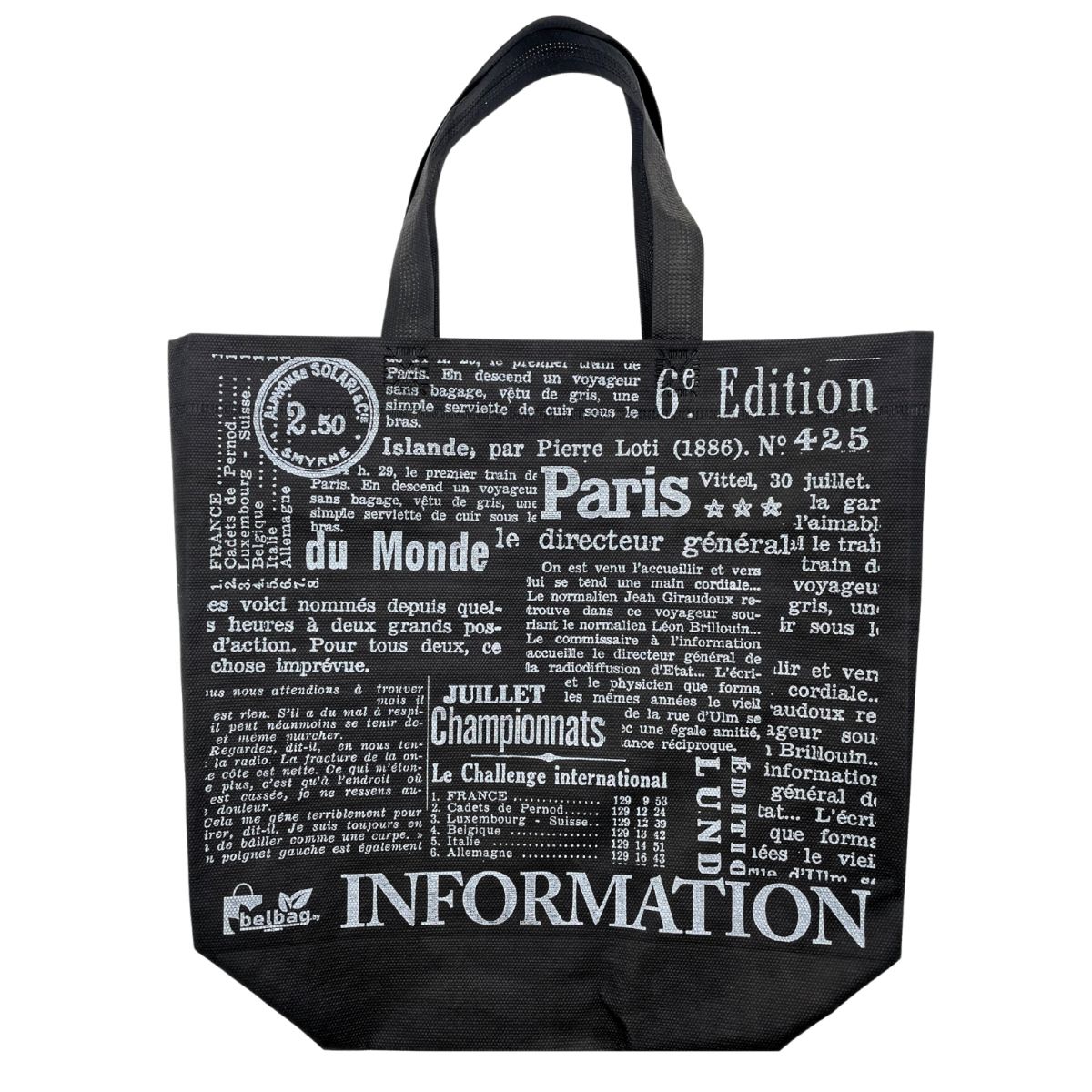 Сумка спанд. с ручкой 40см. ПРЕССА чер. 32*27*10 на молнии (S272) /50/250