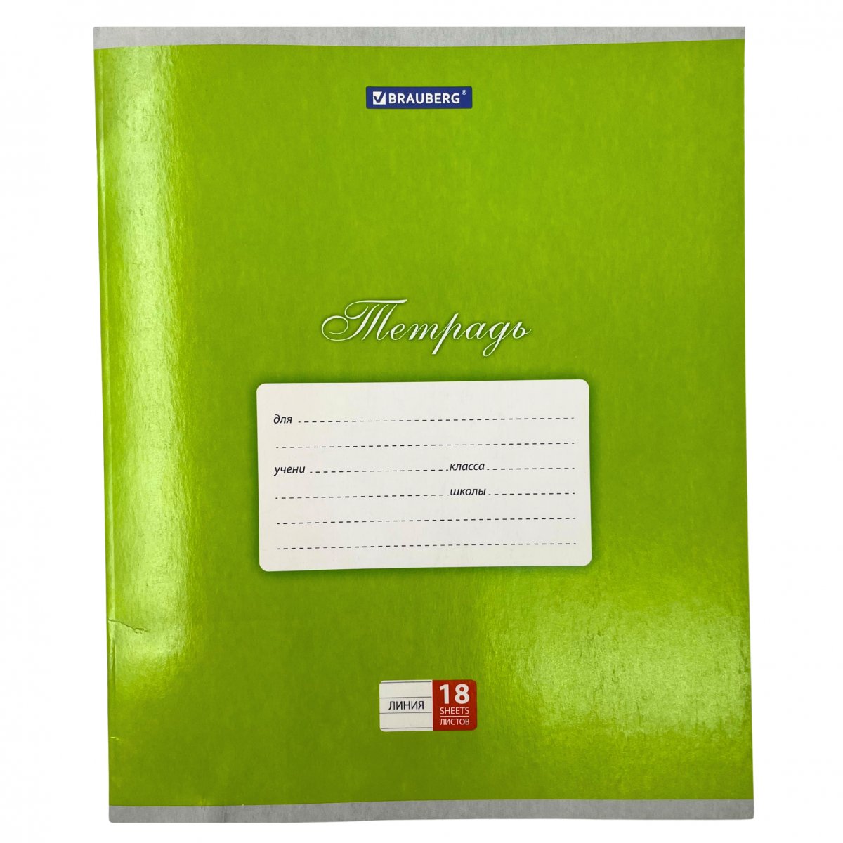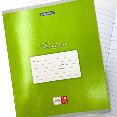 Тетрадь 18л. BRAUBERG линия.,картон ЗЕЛЕНАЯ (Классика)(104734)/20/200