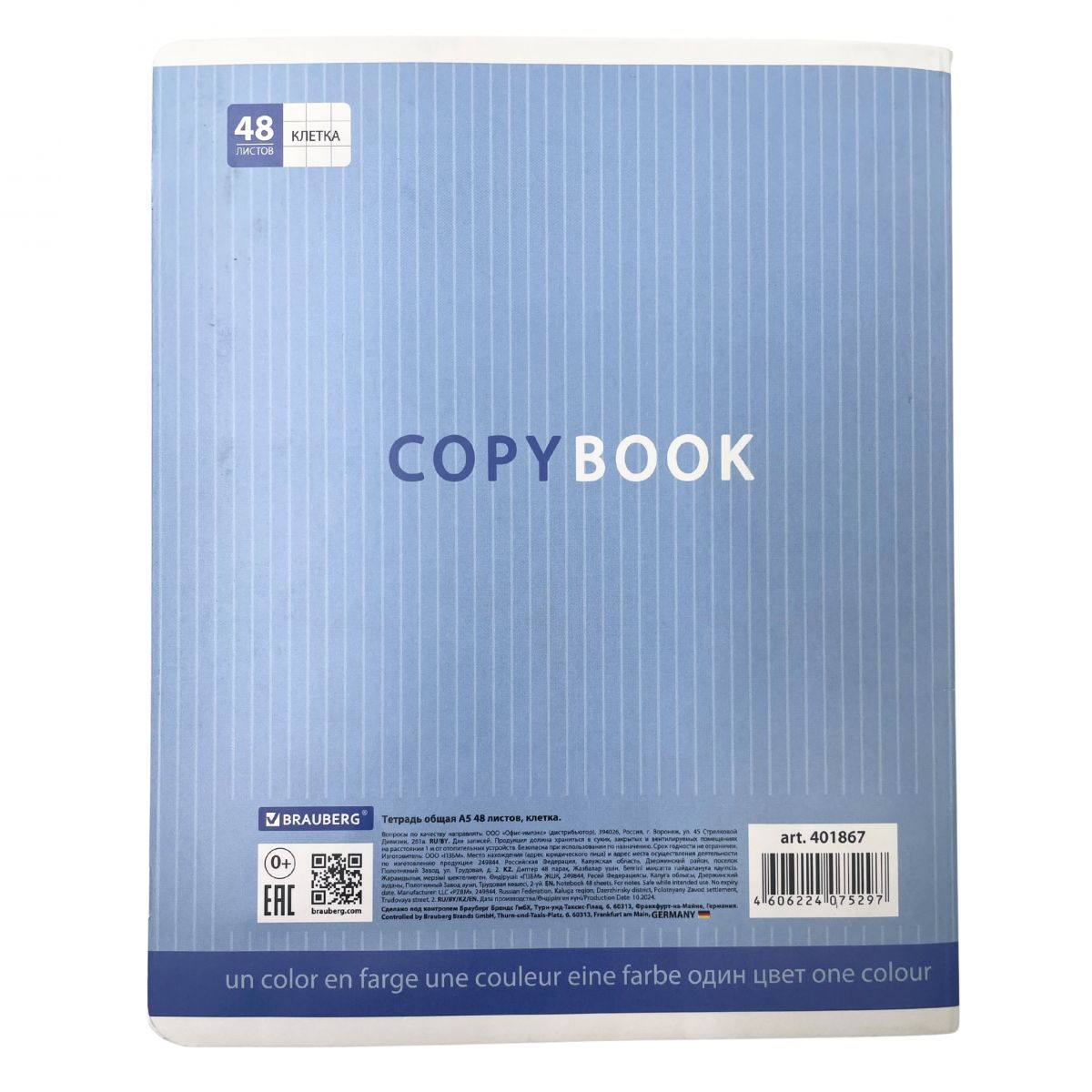 Тетрадь 48л. BRAUBERG "ЭКО" кл., Один цвет (4 вида)(401867)/10/100