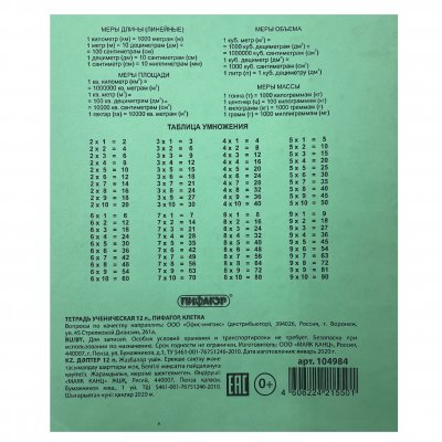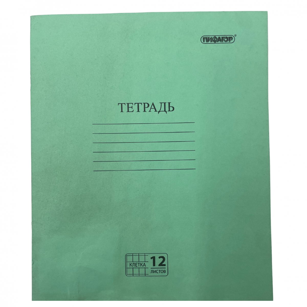 Тетрадь, ЗЕЛЁНАЯ обложка, 12 л., ПИФАГОР, офсет №2 ЭКОНОМ, клетка с полями(104984)/50/200