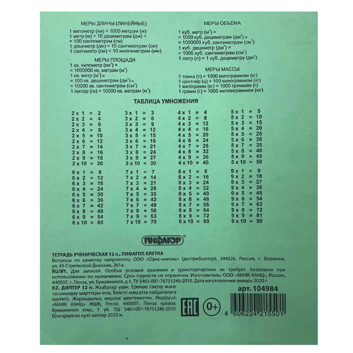 Тетрадь с зелёной обложкой серии Пифагор, артикул 104984 — стильный и практичный аксессуар для школьников и студентов.Почему стоит выбрать эту тетрадь?