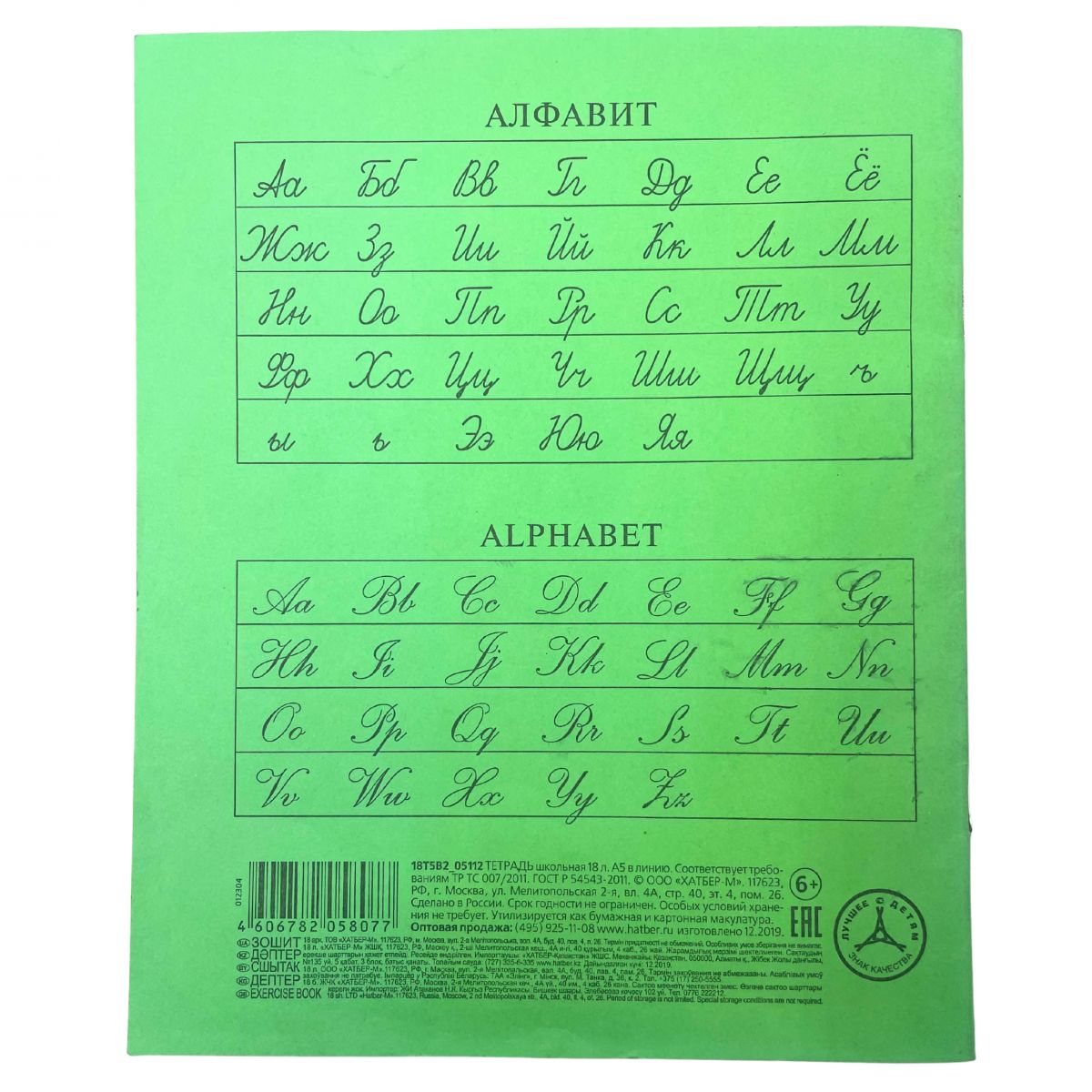 Тетрадь ЗЕЛЁНАЯ обложка 18 л., линия с полями, офсет, "HATBER" (102256)/15/240