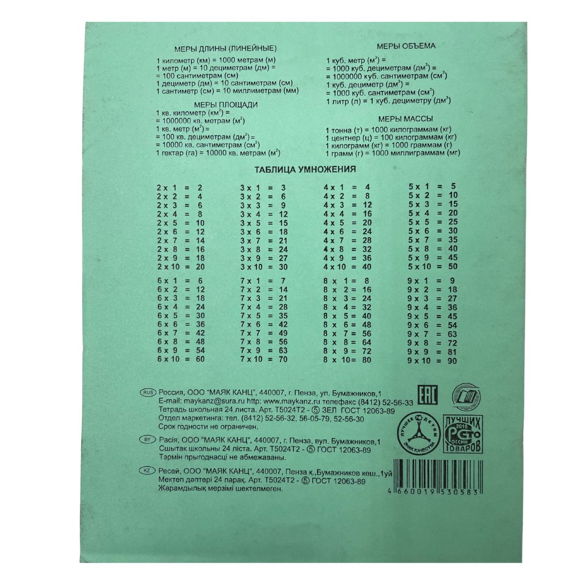 Тетрадь Зелёная обложка 24л.. "Маяк", клетка(103426) 40 /*160