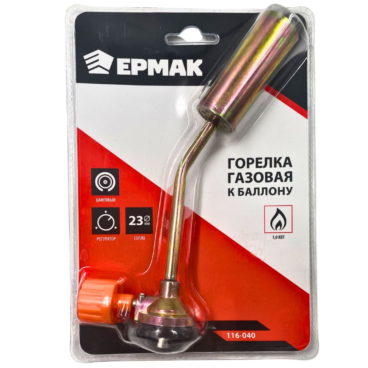 Горелка газовая к баллону с цанговым захватом, шир сопло 23 мм,19*6,5*4см ЕРМАК (116-040)/1/10