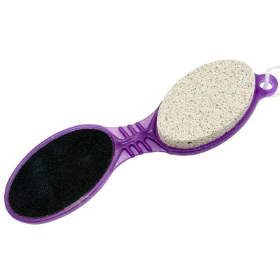 - Первая сторона оснащена абразивной пемзой, которая эффективно удаляет огрубевшую кожу.