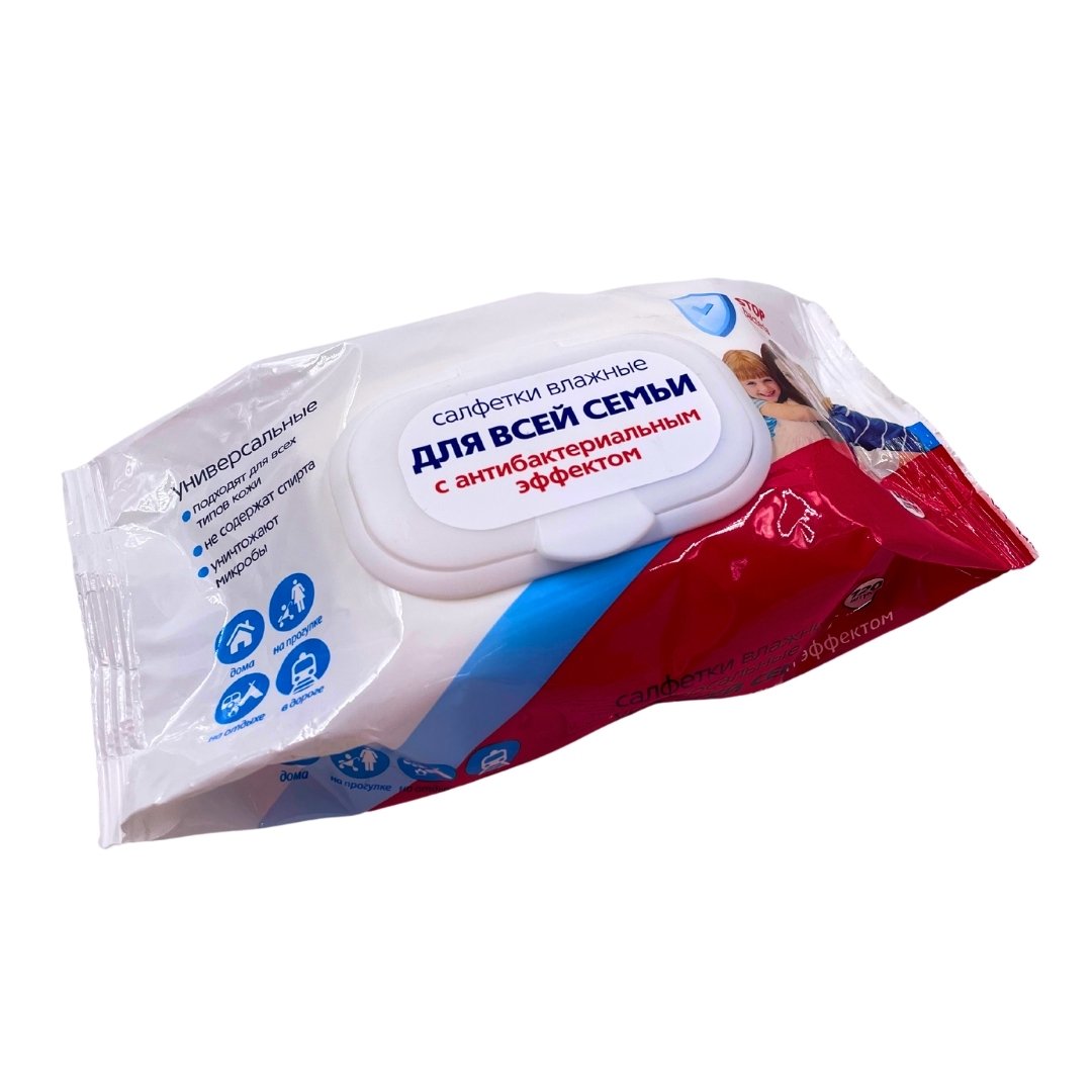 Влажные салфетки ДЛЯ ВСЕЙ СЕМЬИ антибактериальные салфетки 120 шт с клапаном СВЕТОФОР/20
