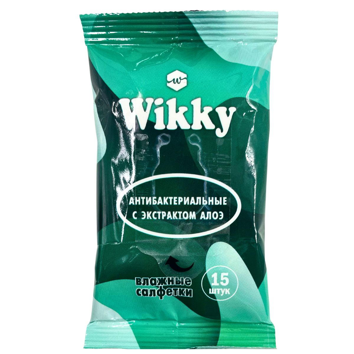 Влажные салфетки Wikky 15шт Антибактериальные с экстрактом алоэ 1/135