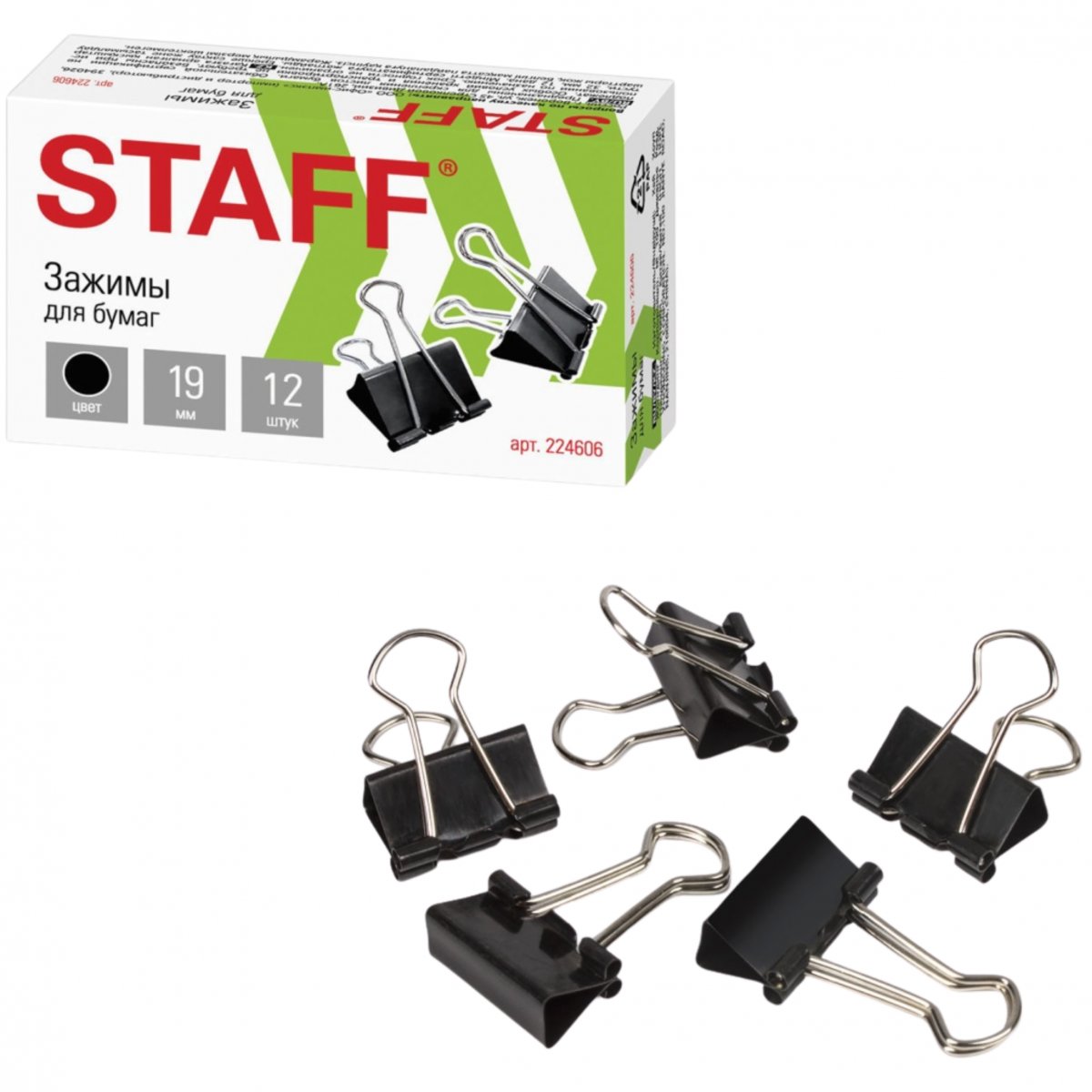 Зажимы для бумаг STAFF "EVERYDAY", КОМПЛЕКТ 12 шт.,19 мм, на 60 л.(224606)/12/300
